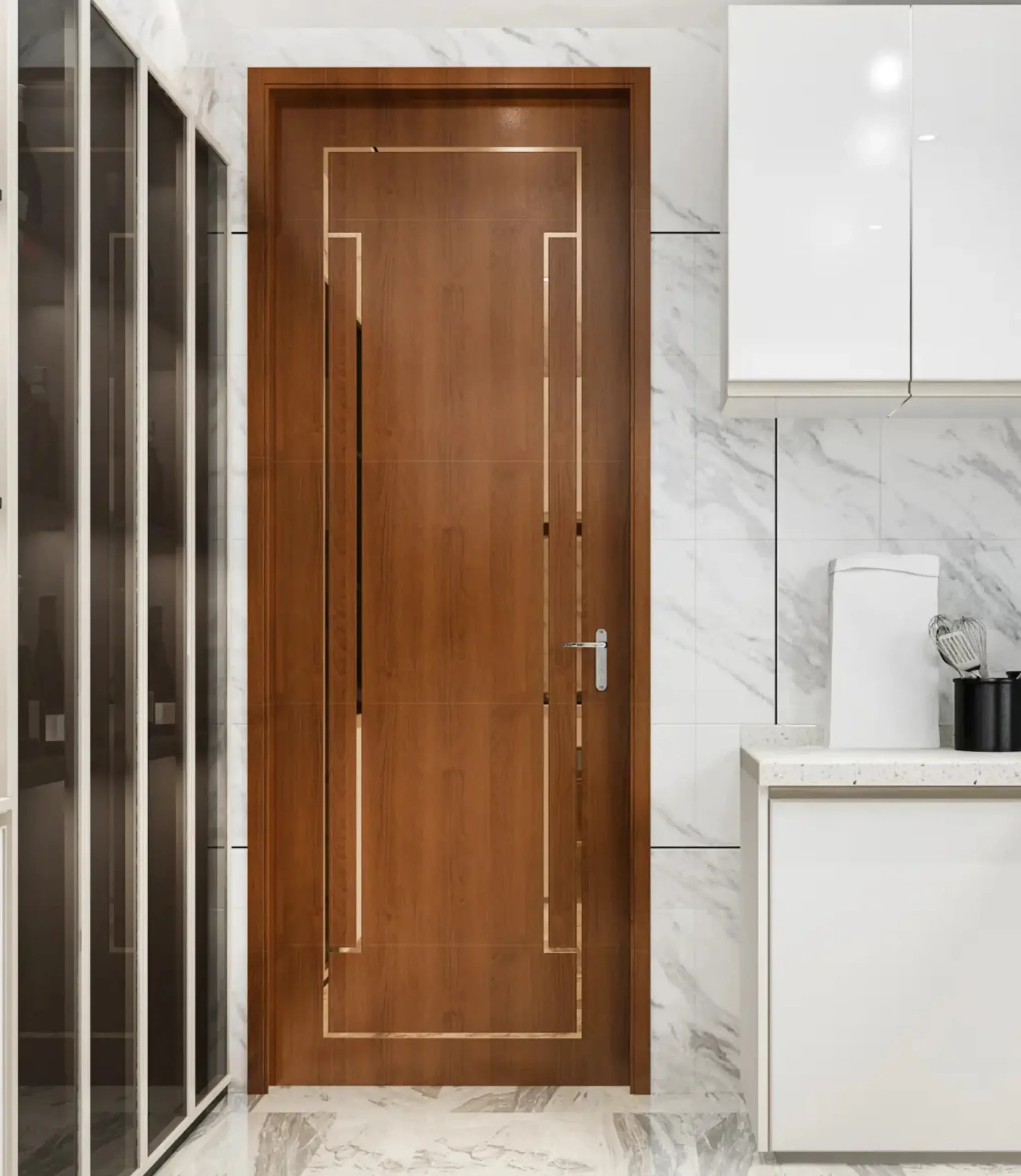 The door features a refined finish with a smooth surface and natural grain texture that enhances its visual appeal. Its design reflects a balance of classic style and contemporary trends, creating a sophisticated entrance for any space. Tawkal doors are engineered with precision, allowing easy installation, secure fitting, and compatibility with standard locking systems for improved safety.